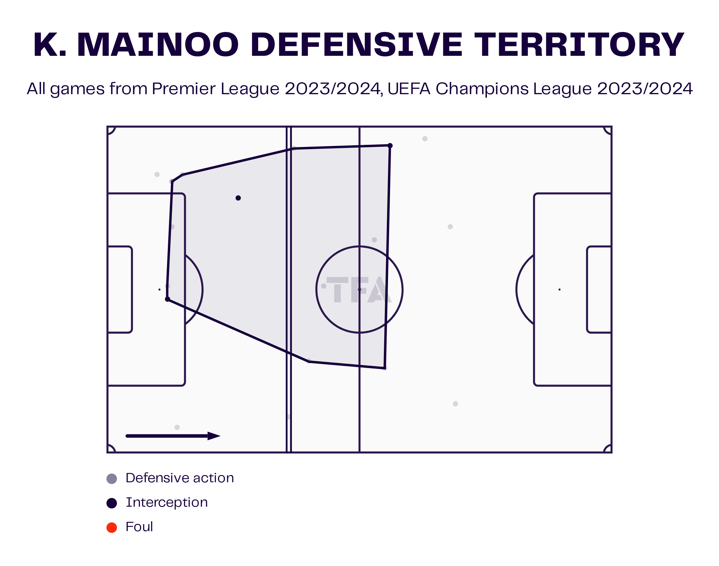 His defensive territory also indicates the same. The 18-year-old midfielder likes to cover up a lot of areas. Mainoo is not a tall figure and struggles a bit to defend in aerial duels. However, he is a hard tackler on the ground and wins most of his defensive duels. The midfielder has also made eight interceptions for his team in 191 minutes spent on the field.